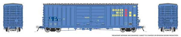 Pacific Car & Foundry B-70-71 Boxcar - Ready to Run -- Golden West Service SP (SP Patch, Weathered, blue, yellow, red)