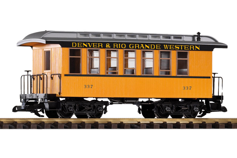 This can be run individually or be paired with other items to form a D&RGW passenger set. Items could include the 38112 D&RGW Starter Set, numerous other locomotives, 38603 D&RGW Baggage Car, 38601 D&RGW Wood Combine, 38600 D&RGW Wood Coach, 38610 D&RGW Wood Coach, 38735 D&RGW Sightseeing Car, and 38602 D&RGW Drovers Caboose. (Multiple previous cars and cabooses are sold out at PIKO and may have different road numbers.)