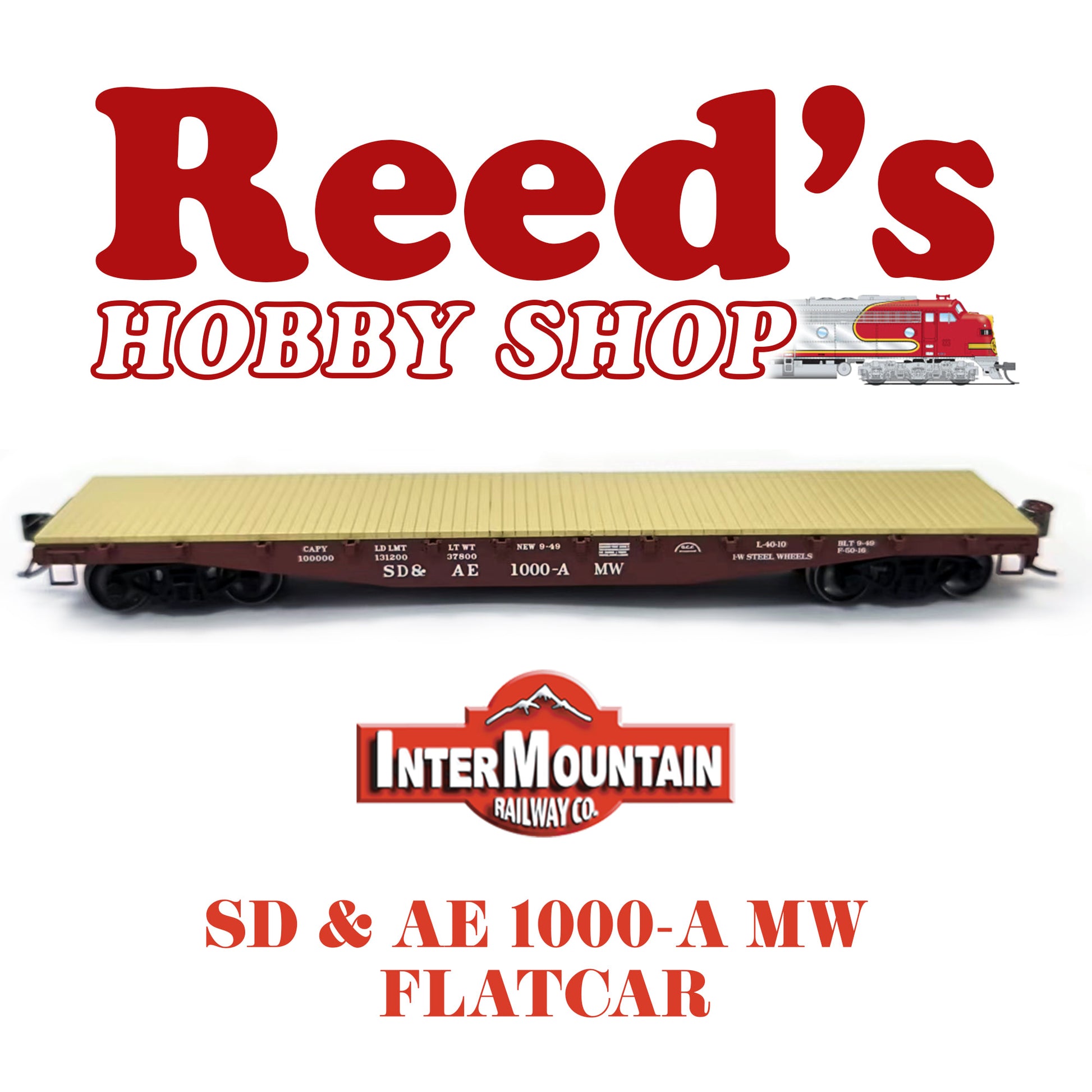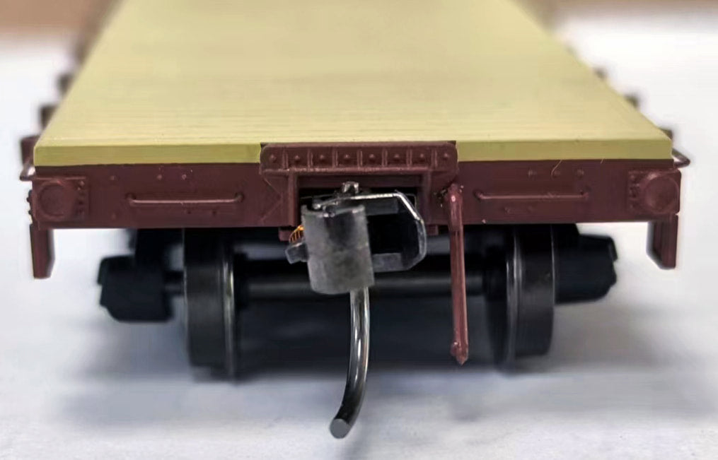 This custom HO Scale Intermountain Flatcar is a great addition to your collection! The 42’ Flat car has distinctive fish belly side sills and individually applied stake pockets. Painted mineral red with white lettering and equipped with InterMountain 33" metal wheel sets and metal knuckle couplers. Get yours today!