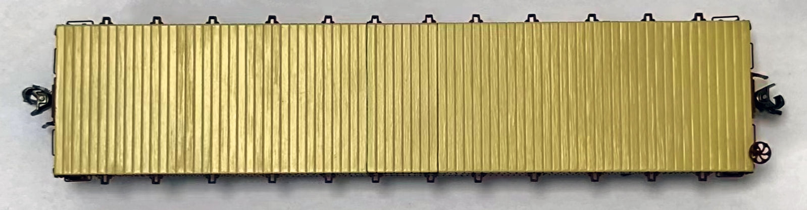 This custom HO Scale Intermountain Flatcar is a great addition to your collection! The 42’ Flat car has distinctive fish belly side sills and individually applied stake pockets. Painted mineral red with white lettering and equipped with InterMountain 33" metal wheel sets and metal knuckle couplers. Get yours today!